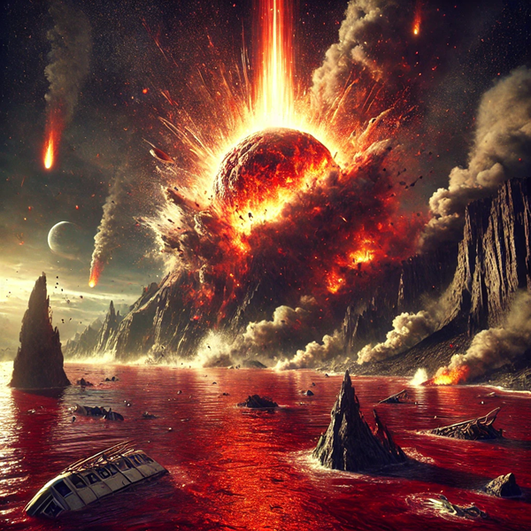 Analysis: Pouring out the bowl "on the sun" confirms the darkening of the sun. The massive blast of the impact also causes fires across the globe. Interestingly, even though these comets are God's judgment against the wickedness of mankind, man continues to blaspheme God and curse him for the punishment. This seems to motivate God to continue with ever-larger comet impacts. Each of these appears to become increasingly catastrophic.