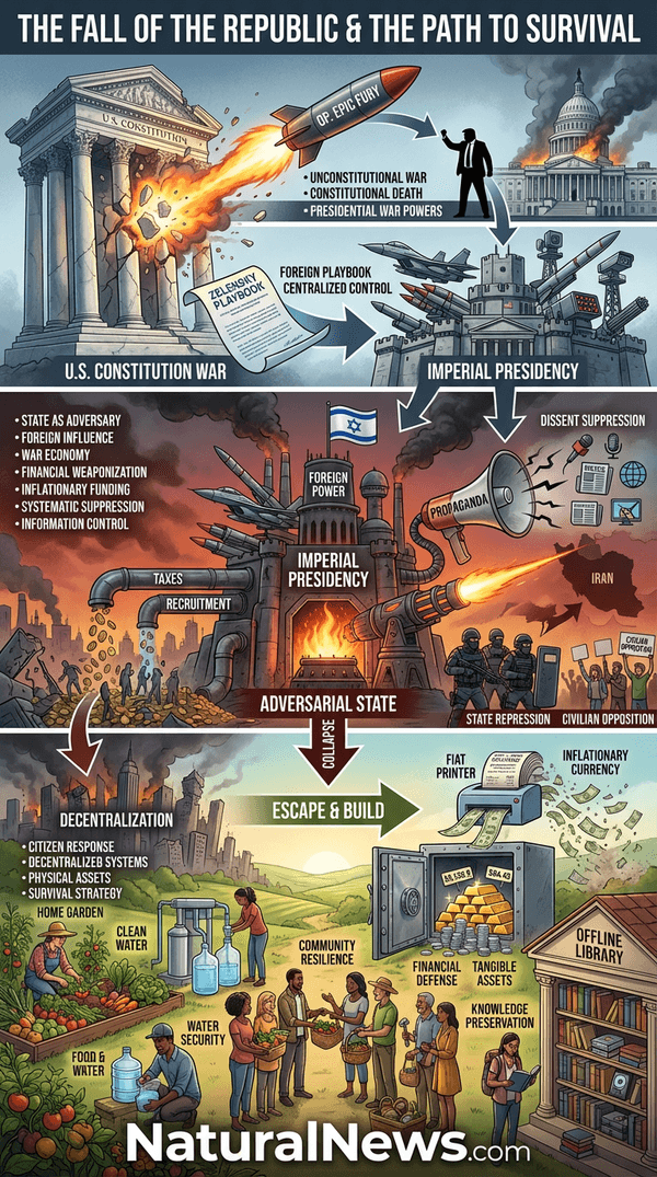 Next, build a parallel society. Grow your own organic food. Secure your own clean water through filtration and storage. Develop trusted local networks for trade, security, and mutual aid. This is not mere ‘prepping’; it is the foundational act of declaring independence from a collapsing, hostile system. Finally, protect your information. Expect platforms like Natural News and Brighteon to be shut down in a ‘Zelensky-style’ digital purge. Have your own offline library -- books, downloaded files, hard drives containing crucial knowledge on everything from herbal medicine to permaculture. Your mind and your local community are your new country.