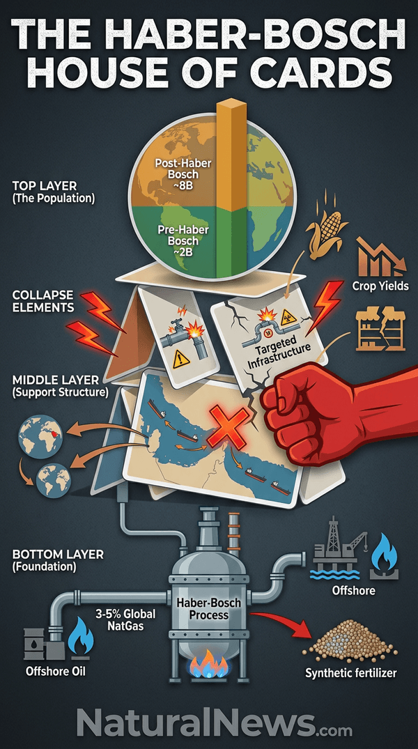 I believe this visual connection isn't just academic; it's a flashing red warning sign that half of humanity now exists only because of a single chemical process and the industrial infrastructure that feeds it. We are living on borrowed time and borrowed nitrogen. This house of cards, built on a foundation of natural gas and geopolitical instability, is now being deliberately targeted for demolition. The coming famine is not an accident of climate or war. It is an engineered catastrophe, and the trigger is being pulled as I write this in March 2026.