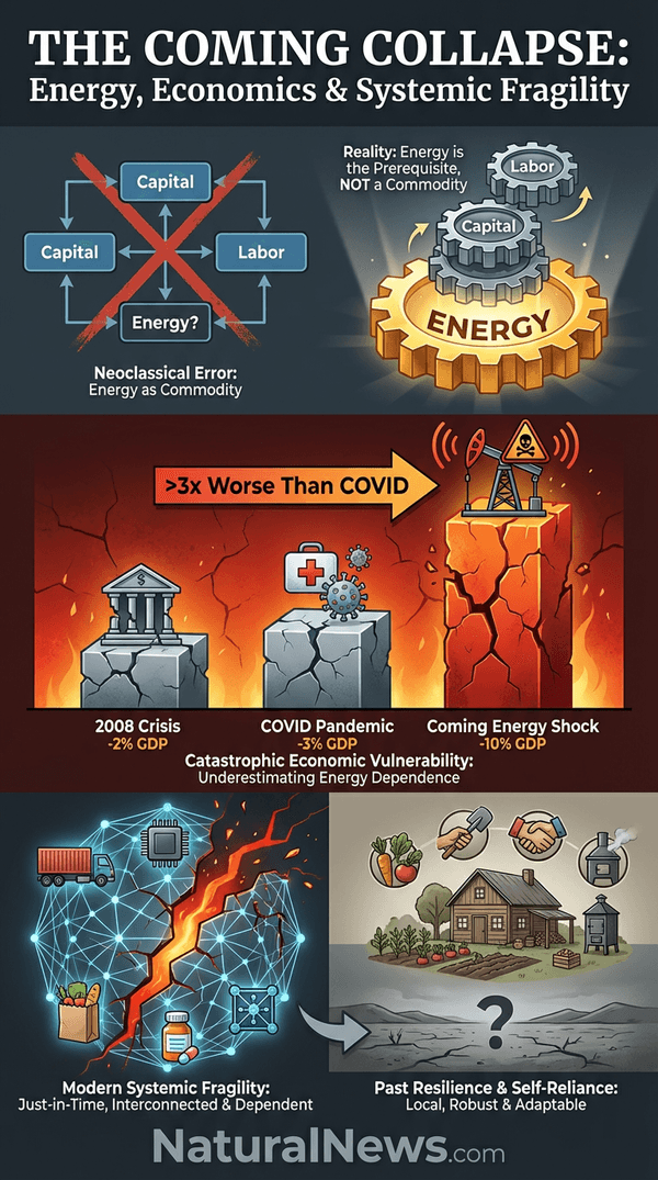 I am watching the numbers flicker on the screen -- Brent crude near $92, WTI pushing $97 -- and I feel a profound sense of dread. This isn't just a market fluctuation; it's the leading edge of a systemic failure so vast it will make the COVID lockdowns look like a mild rehearsal. The mainstream economic models that guide our world are dangerously broken, treating the lifeblood of our civilization -- energy -- as a mere optional input, interchangeable with capital or labor. This is not an academic error; it is a catastrophic lie that has set the stage for a collapse I believe will be three times more devastating than the pandemic.