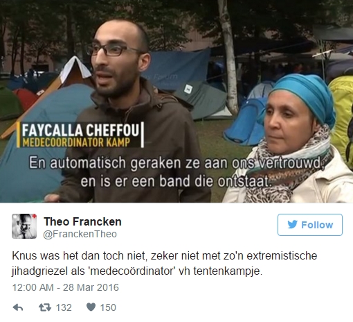This morning, the Belgium Secretary of State for Asylum and Migration, Theo Francken, tweeted a picture of Mr. Cheffou campaigning from a migrant camp, describing him as “jihadist creep”.