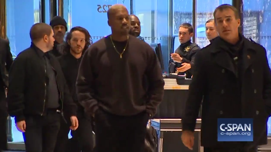 Kanye (and entourage) arrives for a meeting at Trump Tower. Real life. pic.twitter.com/W9PQDgfQmg