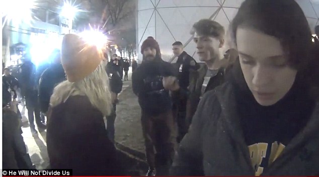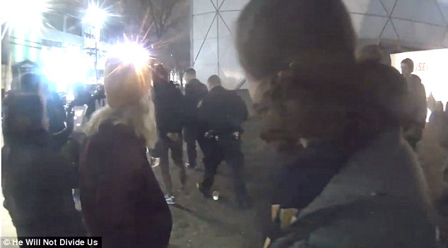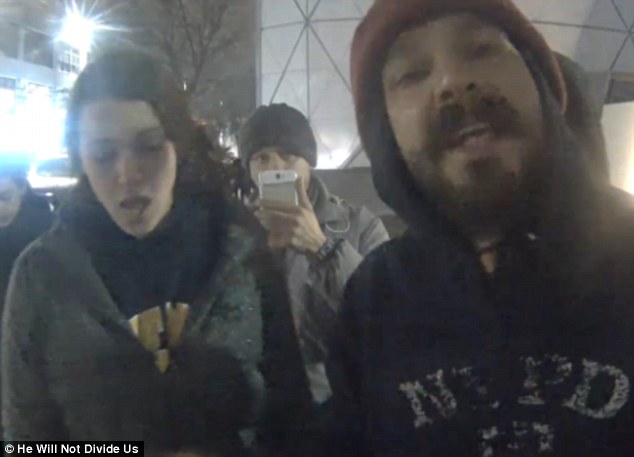 Shia LaBeouf was led away in handcuffs after a spat during an anti-Trump protest.