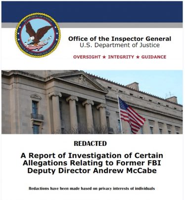 The investigative report concludes that Andrew McCabe — who spearheaded the “deep state” operation to cover up the crimes of Hillary Clinton while falsely accusing President Trump of colluding with “the Russians” — lied under oath and violated FBI Offense Codes 2.5 and 2.6. Labeled “misconduct” in the report, McCabe’s behavior may subject him to criminal indictment.