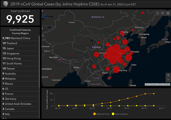 The total number of confirmed coronavirus infections outside China now exceeds 100, and numbers are growing quickly in Thailand, Japan, Singapore, Hong Kong and South Korea. See the current numbers below: