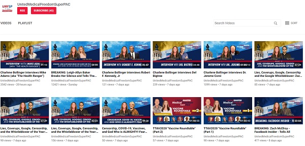 This Super PAC has a Brighteon.com video channel, featuring interviews with Dr. Judy Mikovitz, Robert F. Kennedy, Jr., Del Bigtree, Zach Vorhies and many others: