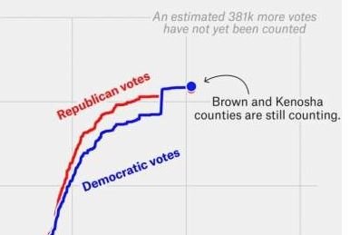 Joe Biden reportedly won Wisconsin after a huge dump of votes were dropped in the middle of the night, Biden only votes, to put him ahead of President Donald Trump.