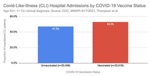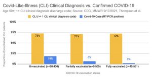 The study identified 41,552 hospitalizations for “covid-like illness” (CLI). This broad diagnostic term could describe numerous respiratory infections of various origins. The term could embody different types of allergies, asthma, inhalation poisoning, or underlying respiratory conditions. The term could describe an adverse event to a drug or vaccination. The term could represent a severe case of illness following vaccination.