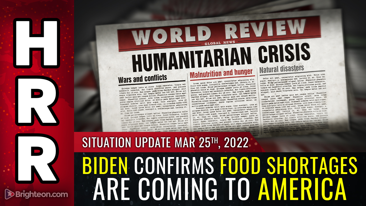 What you're watching unfold here is the realization of Biden's handlers that food inflation and scarcity will become shockingly obvious to everyone later in 2022. That's because everyone buys food. According to official sources, food inflation in the last year (Feb 2021 - Jan 2022) was over 20%. By the time 2022 comes to an end, we anticipate another 20% - 30% price inflation just in 2022 alone. This means food prices will very nearly have doubled from early 2020 to late 2022.