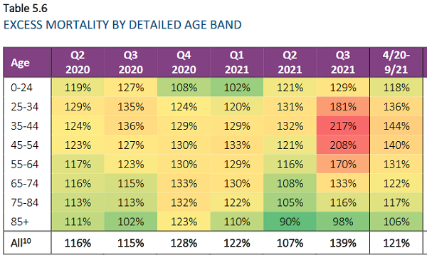 Based on available excess mortality figures already available today (see the 2021 excess mortality numbers from SOA Research Institute, shown below), we know that more than twice the number of "normal" deaths are being seen in some groups following covid vaccinations.