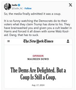Who’s the “Dictator” now, Kamala? The Democrats spent the past 4 years screaming that there can never be another Trump Presidency, or he will be a ruthless DICTATOR who weaponizes the DOJ, the courts and SCOTUS, and goes after his political opponents. It was the Democrats who held up Trump’s fake severed head, with blood dripping down, and plastered the photo-op across social media and newsclips everywhere and look what almost happened in Pennsylvania this summer.
