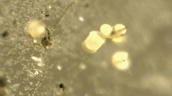 But we also saw what looked like bacterial colonies growing on the surface of the plastic:
