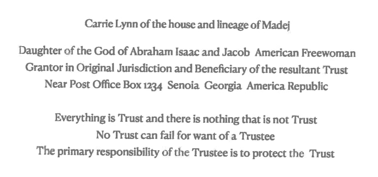 And when the courts requested Carrie Madej appear and defend herself against a wrongful death civil case, she claimed she wasn't "Carrie Madej" per se, but rather she was "Carrie Lynn of the house and lineage of Madej" and was a "Daughter of the God of Abraham Isaac and Jacob."