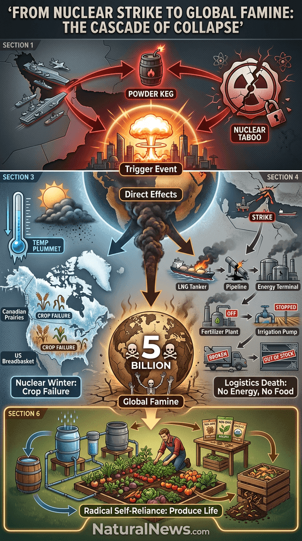 The corporate media obsesses over economic indicators and political polls, but they are missing the forest for the trees. I believe the true collapse trigger is not economic; it is a geopolitical one, specifically the proliferation and probable use of nuclear weapons in the Middle East. The intellectual and engineering capacity of Iran is deliberately underestimated by Western media [1]. Once the first tactical nuke is used, all rational containment disappears. The warnings from independent scientists are clear: even a limited nuclear exchange can plunge the planet into a 'nuclear winter,' collapsing global agriculture for years [3]. The true famine, the one that will starve billions, is not here yet. But it is coming, and our current food system fragility is merely a warning shot of the systemic vulnerability we have engineered through centralization and globalist dependency.