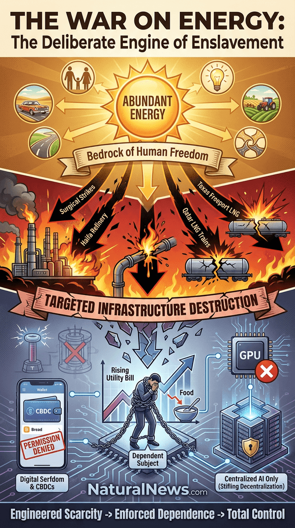 When the news feeds show explosions at the Haifa refinery, or confirm the destruction of Qatar's LNG trains, the establishment narrative demands we see 'geopolitical conflict' or 'market disruption.' I see something far more sinister. These are not accidents of war or mere collateral damage. They are precise, surgical strikes on the very architecture of human civilization.