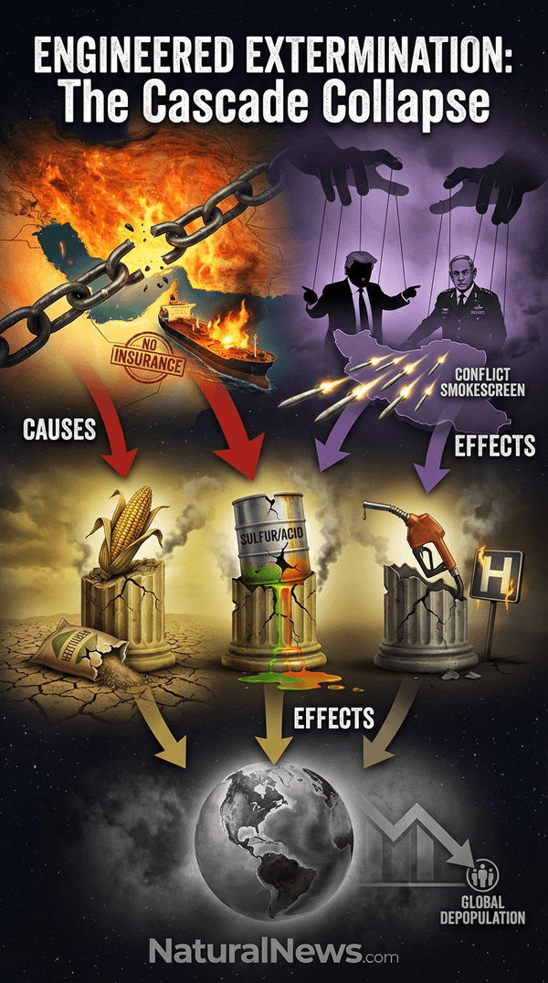 The lockdowns were a test. The real plan is to lock down the global supply of fertilizer, fuel, and food itself. The closure of the Strait of Hormuz has severely disrupted the global supply of nitrogen fertilizers, which are essential for modern agriculture. [4] Approximately half of all global food production is dependent on the use of fertilizer. Without fertilizer, crop yields would drop precipitously. [5] This is not an accident. It's a shift from bioweapons to resource warfare, a more direct path to extermination.