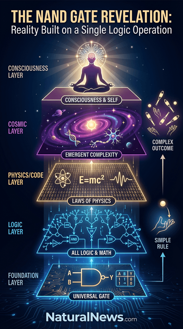 I believe it points to a computational substrate, a programmed universe. This isn't speculation; it's a logical inference from the evidence. The simplicity is eerie. As one science paper notes, "the two universal gates, namely NAND and NOR are independently able to perform all fundamental logic operations" [1]. But NAND alone suffices. That universality hints at a designed system infused with decentralized computation that infuses matter, neurology and light itself.