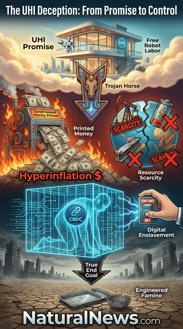 So if UHI leads to economic ruin and ignores physical reality, what is its true purpose? Follow the money to the real agenda: control, enslavement, and ultimately, depopulation. UBI/UHI is not about prosperity; it’s the perfect control mechanism for a coming Central Bank Digital Currency (CBDC)-based surveillance grid. In this system, your entire financial existence is programmable. Your 'income' can be shut off for non-compliance -- for refusing a vaccine, for criticizing the government, for any reason the authorities deem fit [8].
